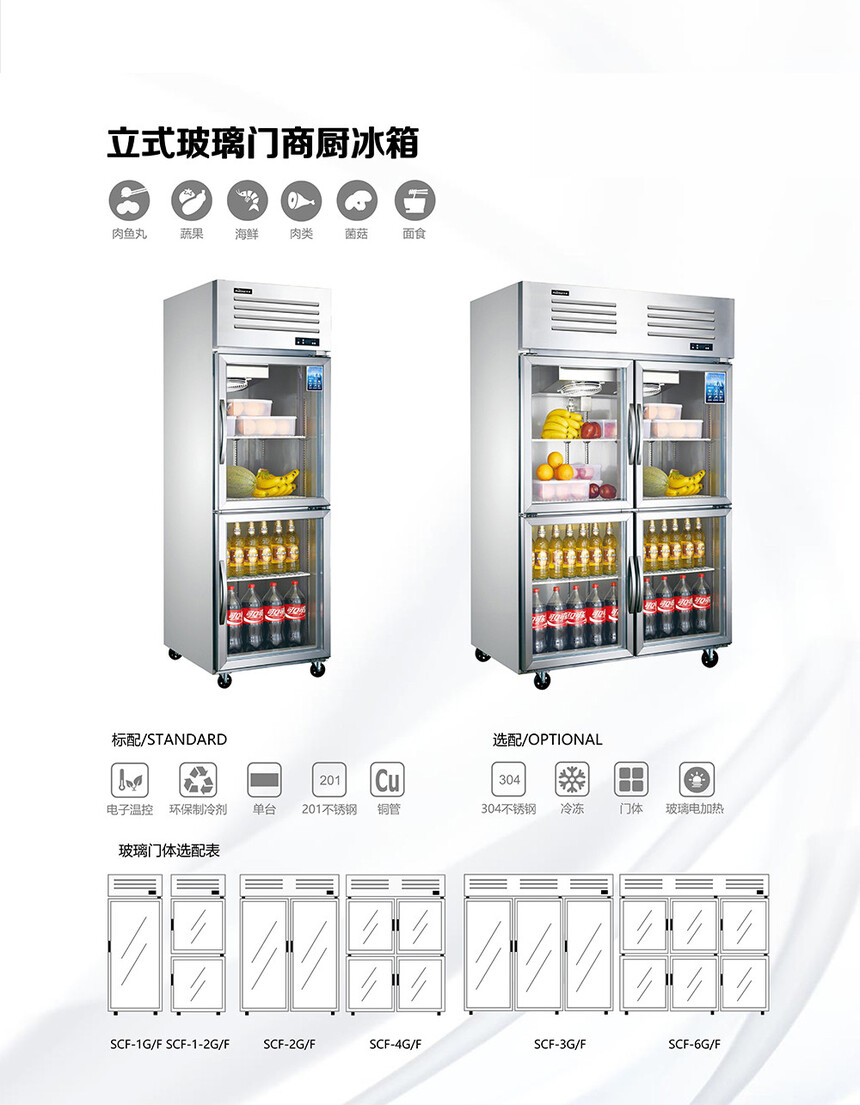 華美不銹鋼玻璃門(mén)廚房冰箱SCF-2GT SCF-3GT